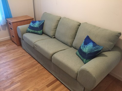 Here’s the finished product, with some coordinating throw pillows I bought on Etsy.