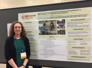 It truly takes a village to make a project like this possible. It’s impossible to mention everyone who played a part, but these are the key players. Thanks to my research mentor, Dr. Randi Diamond, for her hard work, dedication, and ongoing support. I also want to thank Weill Cornell’s Division of Geriatrics and Palliative Medicine for sponsoring my trip to the conference, as well as my initial research funding from the Howard Olian Endowed Scholarship in Geriatric Medicine. I also want to acknowledge those who worked with me on the project last summer. From New York: Dr. Howard Eison, Dr. Jemella Raymore, Dr. Carol Capello, Dr. Veronica LoFaso, Dr. Cary Reid, Dr. Ron Adelman, Dr. Kelly Trevino, Lauren Meador, Allison Maritza Lasky, and my fellow MSTAR/Adelman scholars. From Uganda: the St. Francis Naggalama Hospital administration, physicians, and staff; and the Naggalama Hospital Palliative Care Outreach Team.
