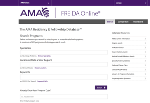 The home page for FREIDA, the American Medical Association’s online gateway to exploring residency programs … *gulp*