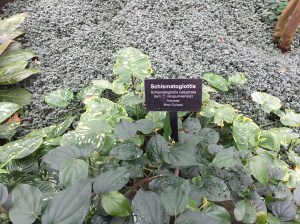 Part of how you see things depends on your perspective. And I was looking at the plants as a medical student. So when I saw a plant called Schismatoglottis (pictured at left), I immediately thought the placard read “Schistosomiasis” — a nasty parasitic worm you contract by exposure to infected water.
