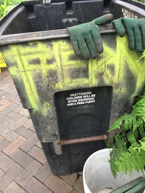 I found unexpected humor at the conservatory too. In the same room where my sisters and I had run amok as kids, I saw this gardener’s bin. I’m glad to see childhood playfulness is still welcomed — even encouraged.