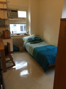 Having owned a two-story house with a full basement, living a dorm room, which I will be this year, is … an adjustment. But all things considered, my room is pretty nice. It’s much bigger than I expected. The closet is larger than the one at my last apartment. And with a corner room (and therefore two windows), there’s excellent daylight. I’m supposed to share a bathroom with one other person, but thus far no one has moved in next door. There’s a shared kitchen on the floor for cooking. I’ll live in this building my first year, then move into an actual apartment for second through fourth years. I’m certainly not going to complain about my living situation too much either way, because since it’s student housing it’s actually affordable — a rarity on the Upper East Side of Manhattan.