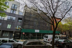 It’s easy to grumble about all this, harder to smile. This morning though, as I stepped out of my building and peered onto the car-choked street, watching windshield wipers wrestle with the driving rain, I did smile. Because unlike those cars, unlike the drenched pedestrians doggedly pressing through this weather a block or two away (many of them walking dogs), I was dry. This thanks to the facade work, and to the unavoidable, unsightly scaffolding stretching up toward the grim sky.